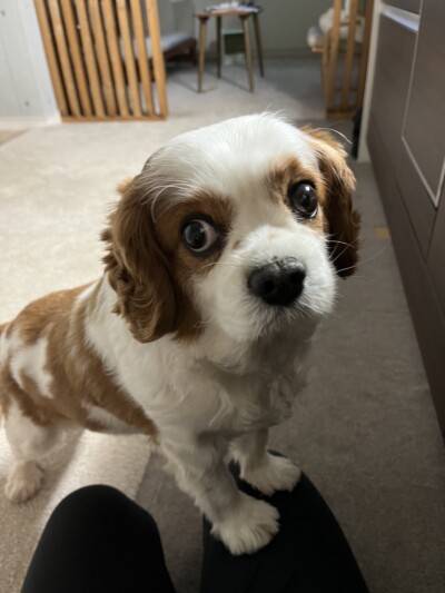 ごはんを食べた後もまだ食べたくて 膝の上に足を乗せてアピール🤣