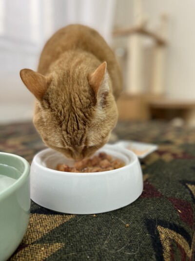 ごはんがセットされると ペロペロと美味しそうに食べてます🎶
