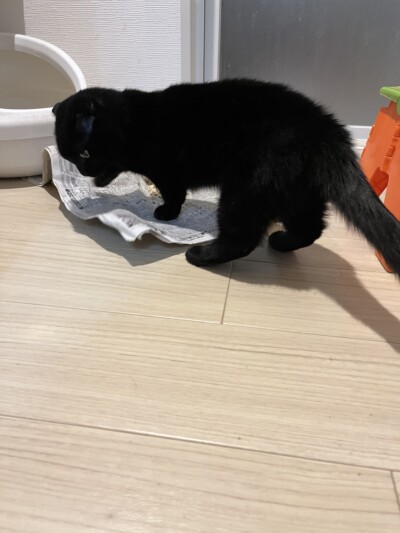 新聞紙で遊んでいる子🐈⬛