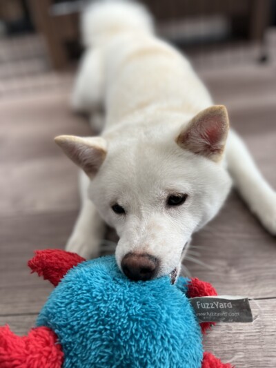 たっぷりお散歩をして オモチャ遊びをして 満足そうなこの笑顔🥰