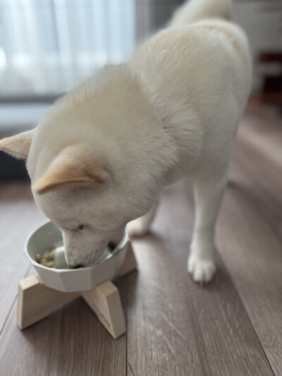 ごはんタイム🎶 お座りをして待機 合図と共に食べ始めます