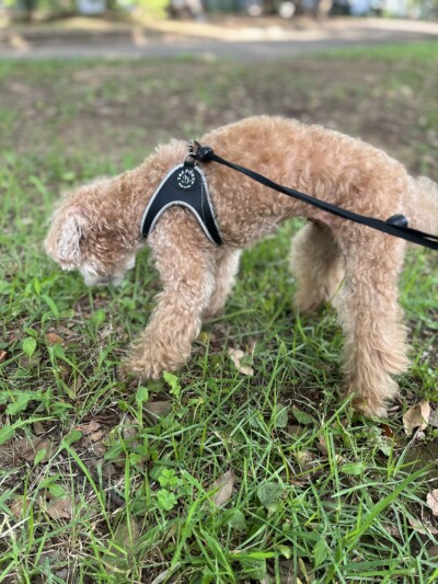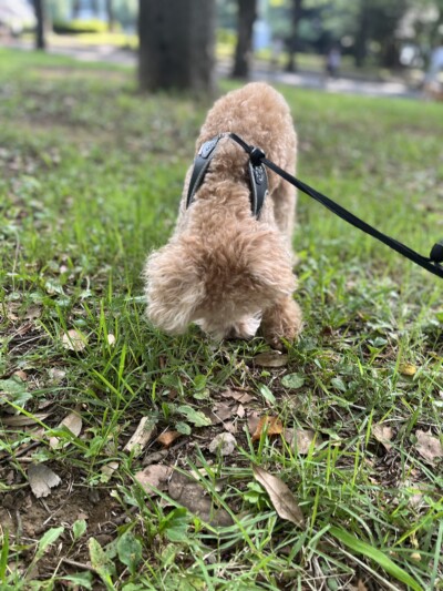 涼しい日陰を15〜20分くらい 芝生の上、土の上を歩きます