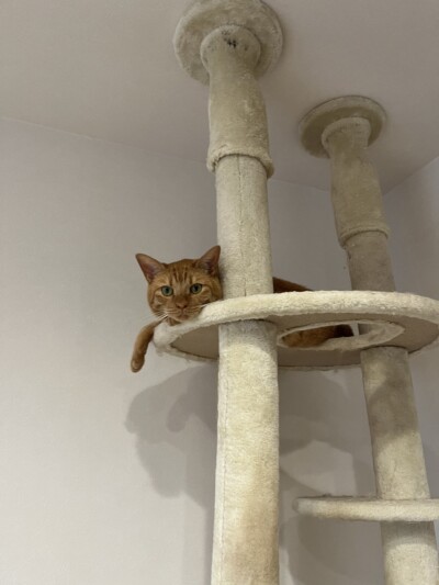 カウンセリング中はキャットタワーで くつろいでいる茶々ちゃん🐈