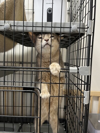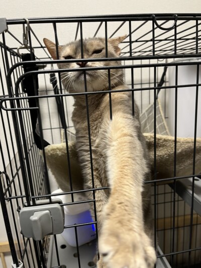 小さいお子様がいるので カウンセリング中はゲージの中から ご挨拶です♪