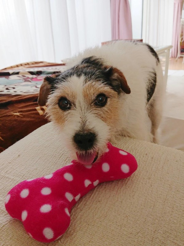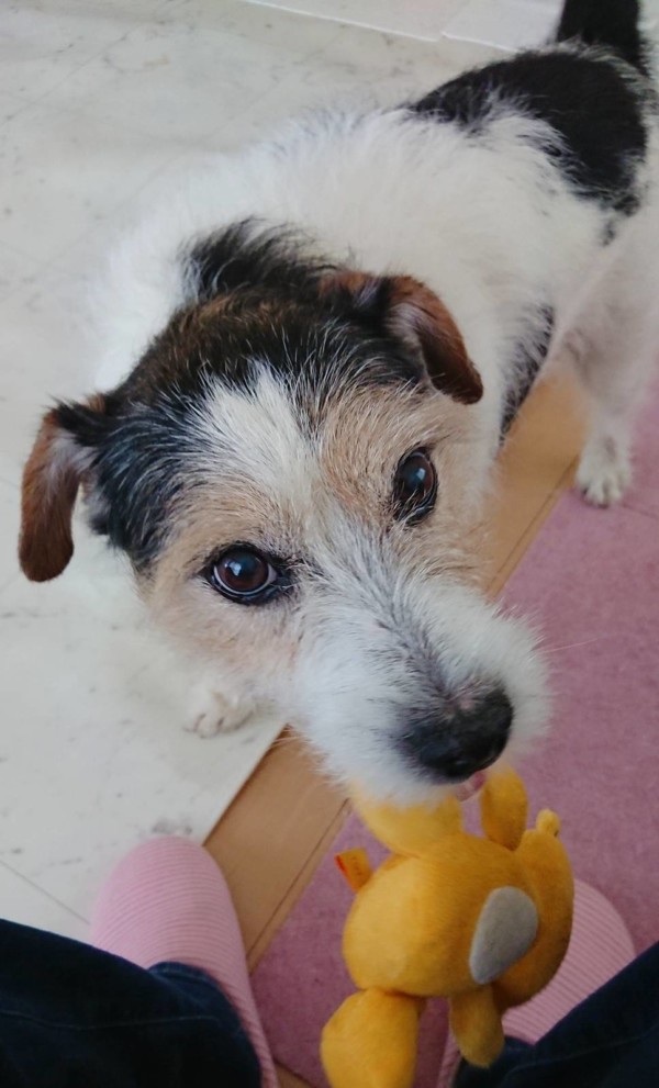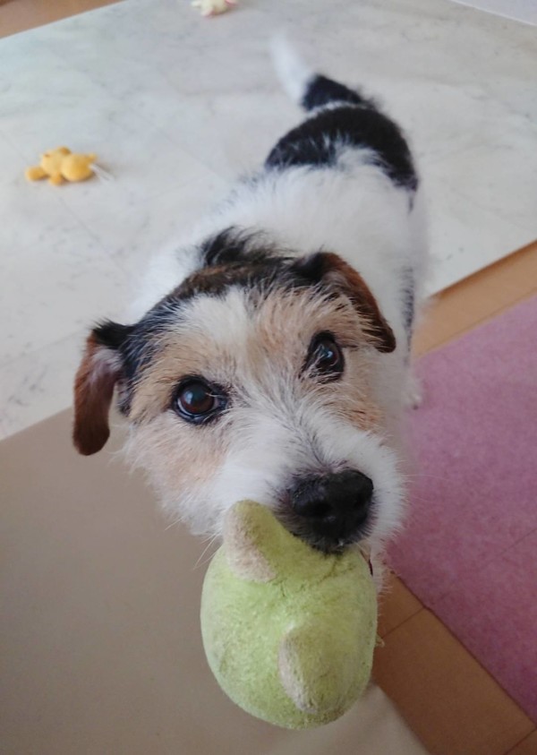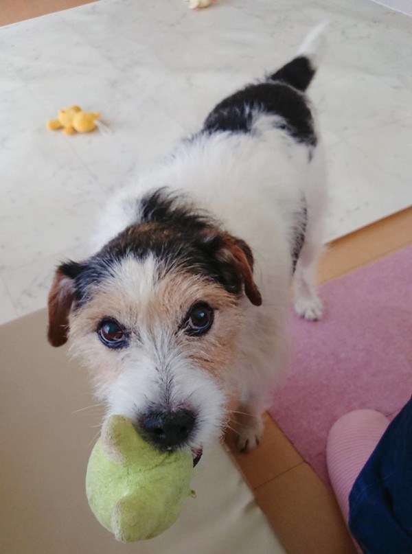 いつも通り元気に「投げてー!」の持ってこい遊びの要求です❤(ӦvӦ。)