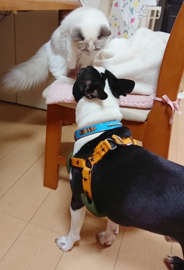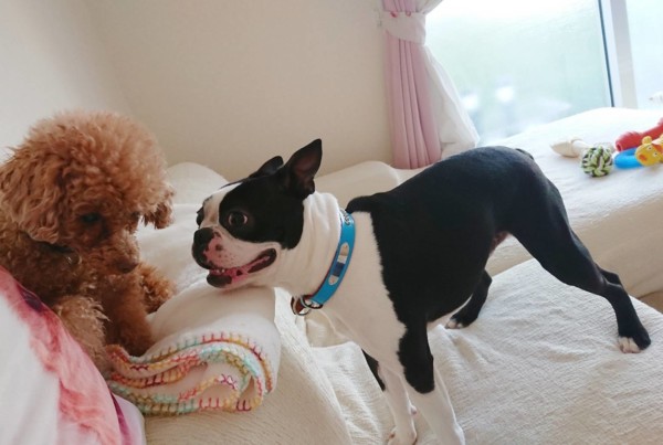 今回も突き飛ばされそうな勢いですが、残念ながらシッターSHIORIはそんなにか弱くないので、ふぅ太君と力比べで遊びます🎵(*´艸`*)