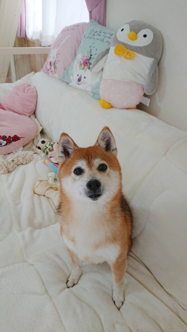 柴犬には珍しく、いつもはおっとりの小梅ちゃん🍀