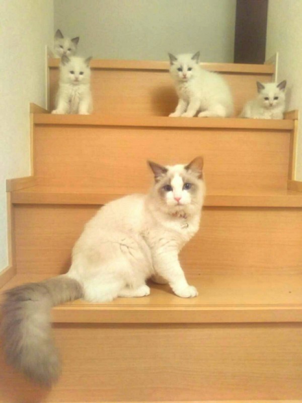 ママ猫の美形の顔立ちと物怖じしない性格、パパ猫の毛吹きの良さを上手に受け付いたねぇ🎶