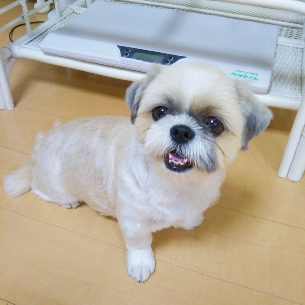 「体重計の前で写真撮らないで欲しいワン!」