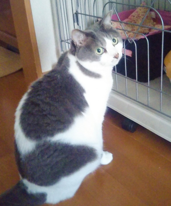 「モカのご飯も食べていーい?」と、モカ君のご飯の定位置のケージ2段目を狙うチョコ君🍀