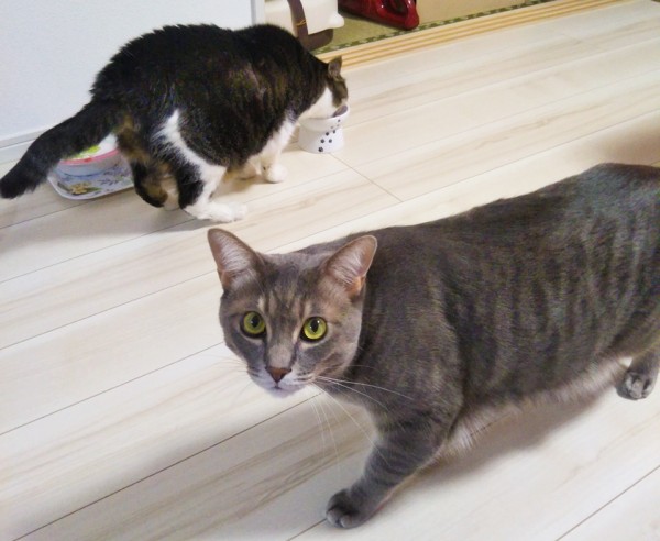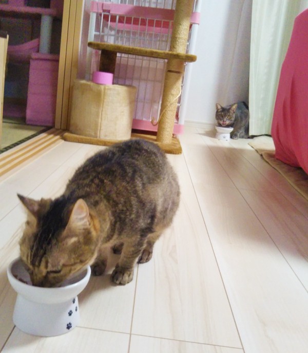 らぶちゃんの残したご飯を食べているのは、おっとりマイペースな甘えん坊ぽにょ君❤