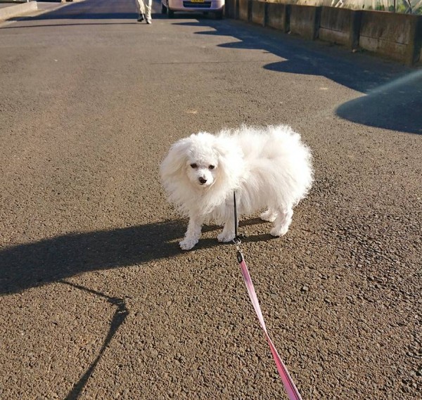 お庭遊びとお散歩で灰色になりやすいけど、シャンプーで真っ白✨