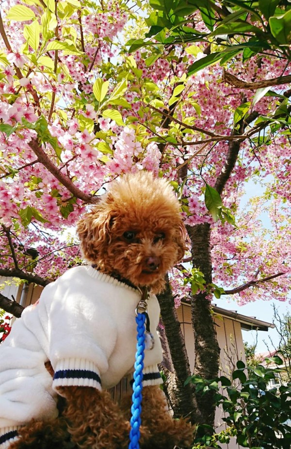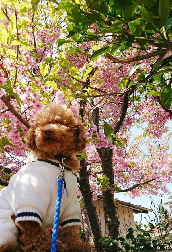 今回は1匹だけなので、桜を見ながらの〜んびりお散歩🌸