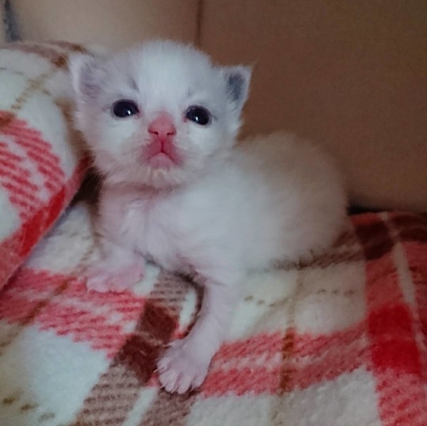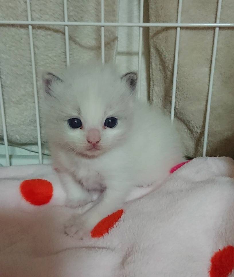 生後3週間、ヨチヨチとよく歩くようになり、自分の手を舐めてグルーミングが出来るようになりました。兄妹がいなく競争もないからか、1匹遊びをするような、のんびりとマイペースな性格になりつつあります🌸