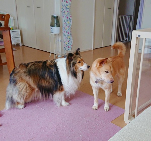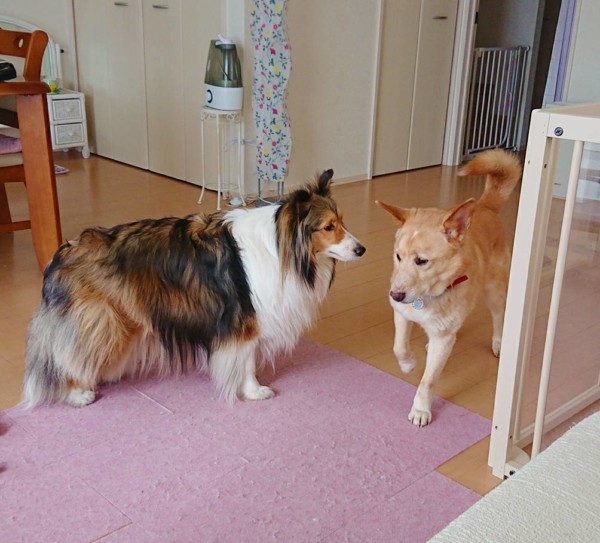 いつも小型犬達のパワーに圧倒されてるけど、今回はりょう君と同じく、犬見知りでおっとりのミルちゃんと一緒だから平気かな?❤