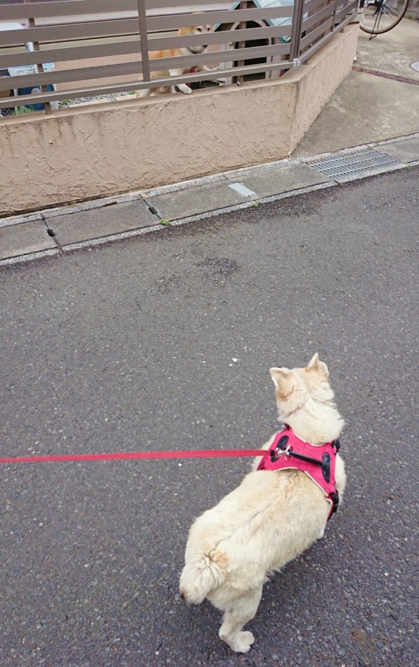 尻尾フリフリ🎶足取りも軽やかに、ご近所のワンコとコミュニケーション❤