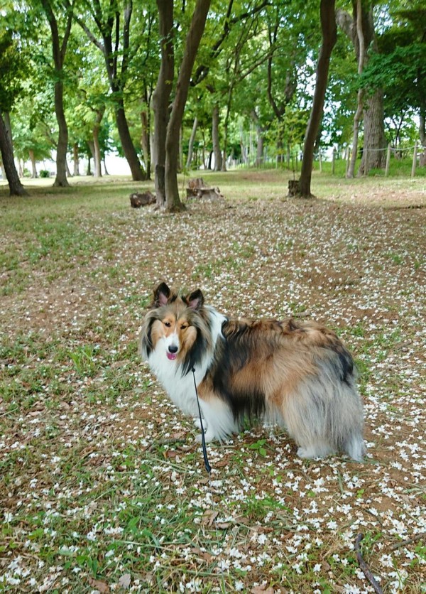 落ち葉やら花弁やらたくさん毛にくっつけたら…