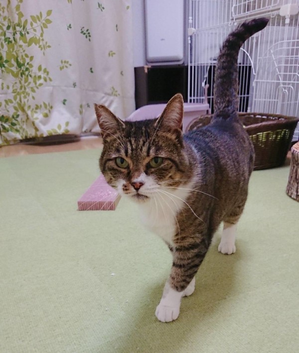 最初は緊張していても、慣れたらシッターが室内に入るとすぐに尻尾ピーン!で来てくれます❤