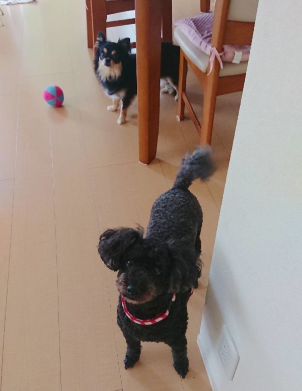 そばちゃんママが持って来てくれたガムで、ワンコ達の両手を使ってのハムハム姿にすっかりハマっているシッターSHIORIです❤(ӦvӦ。)カワイイ