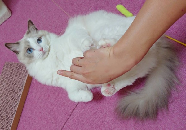 よく市販のラグドール飼育書等には、「ラグドールはぬいぐるみのように抱っこが好き」なんて書いてありますが、もちろん猫なのでそんな事はないと思います(笑)