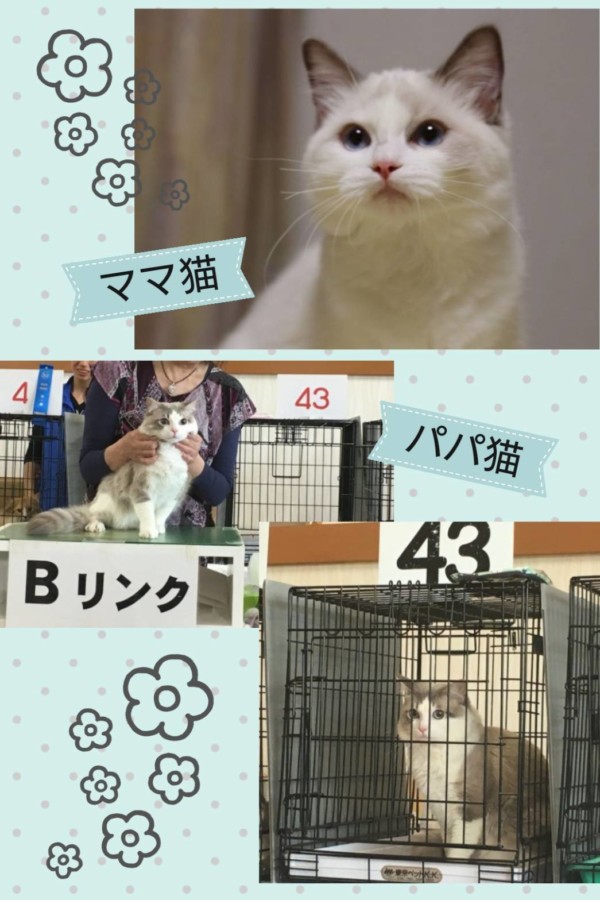 パパ猫はキャットショーで最高位のダブルグランドチャンピオン🍀ママ猫も美猫ちゃんで、2匹共に初めて会った私にもゴロゴロスリスリ来てくれるような、とっても性格の良い夫婦でした❤