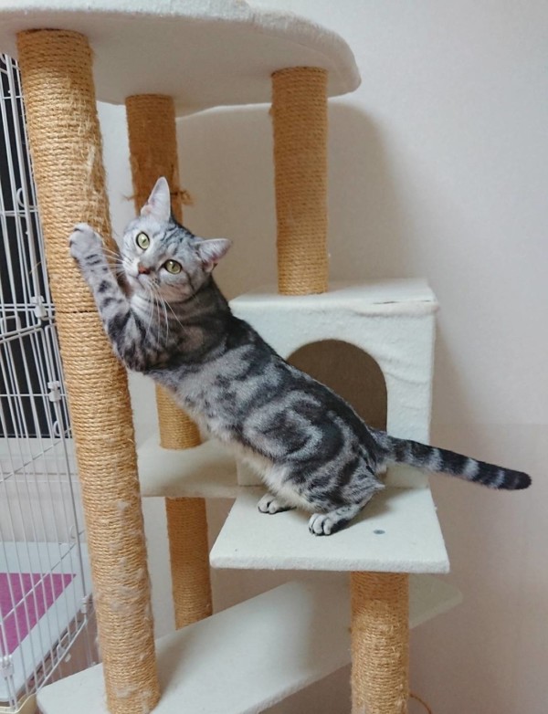 初日は緊張してキャットタワーの上で固まってましたが、少しずつ慣れてくれて…