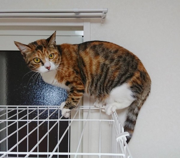 しかし、娘のくーちゃんの警戒心は凄くて、少し近付いただけでもゲージの上に登り💦