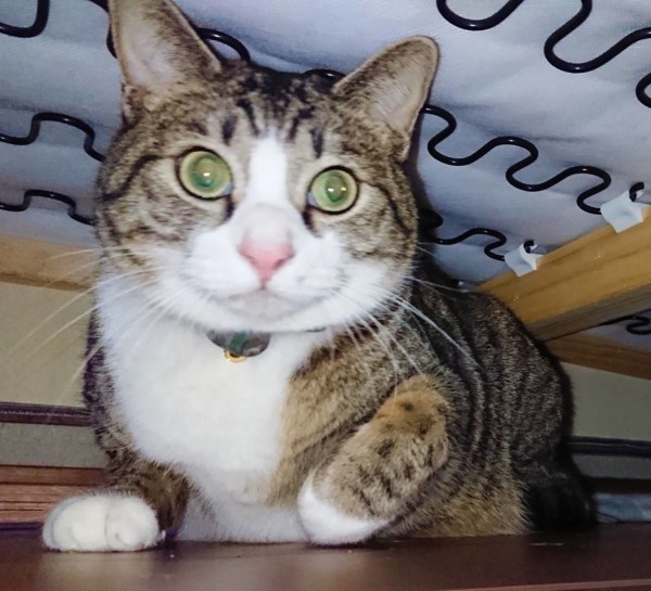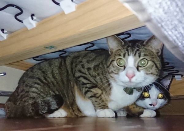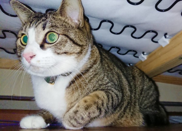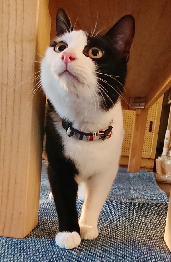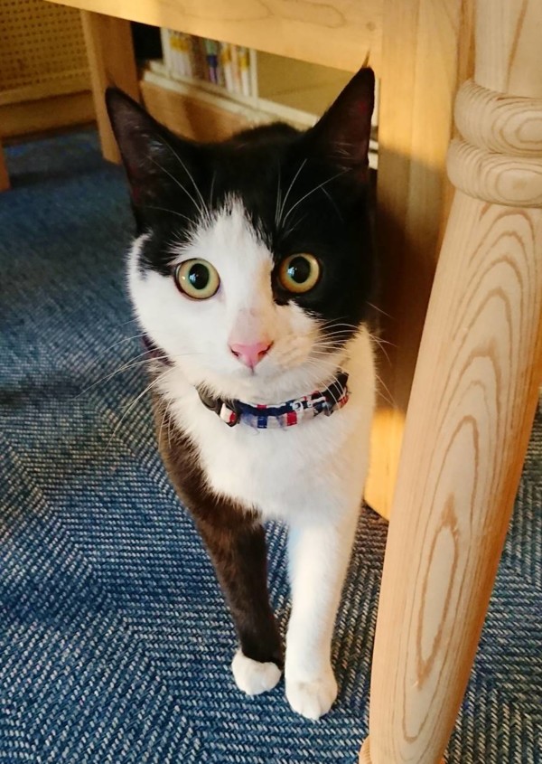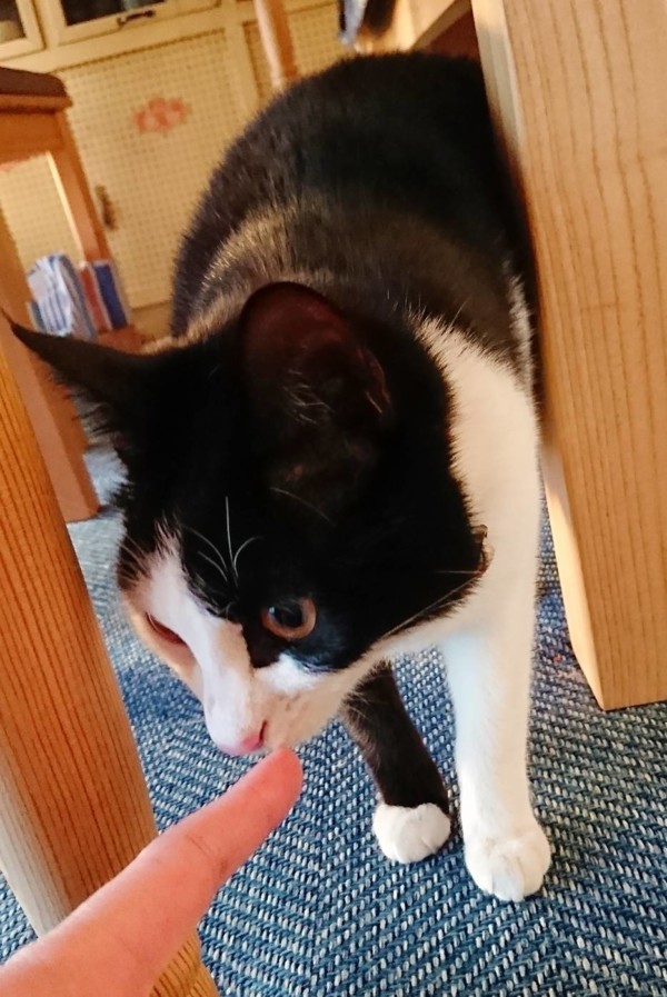 人見知りしてソファー下に隠れていますが、指を向けると意外とスンスン近付いて来てくれます🌼