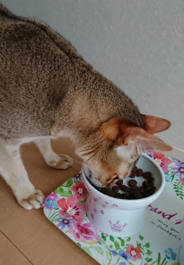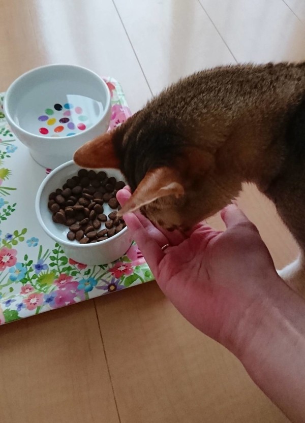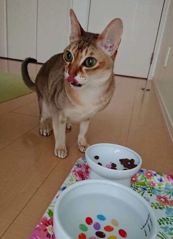 シンガプーラは最小の猫なので、そのご飯の量にビックリです!うちのラグドールの4分の1!