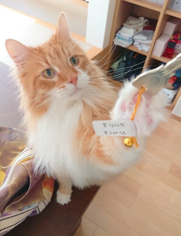 お預かりの鍵につけた鈴でチョイチョイ🎶