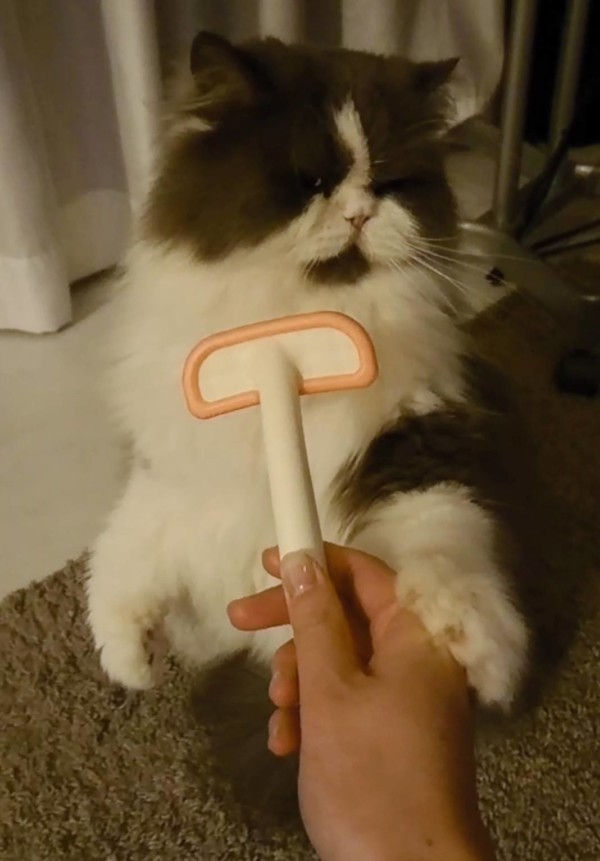 爪の出していない猫パンチを連打されつつ、それでも構わずブラッシングしようとしたら、手で抑えられました(*´艸`*)