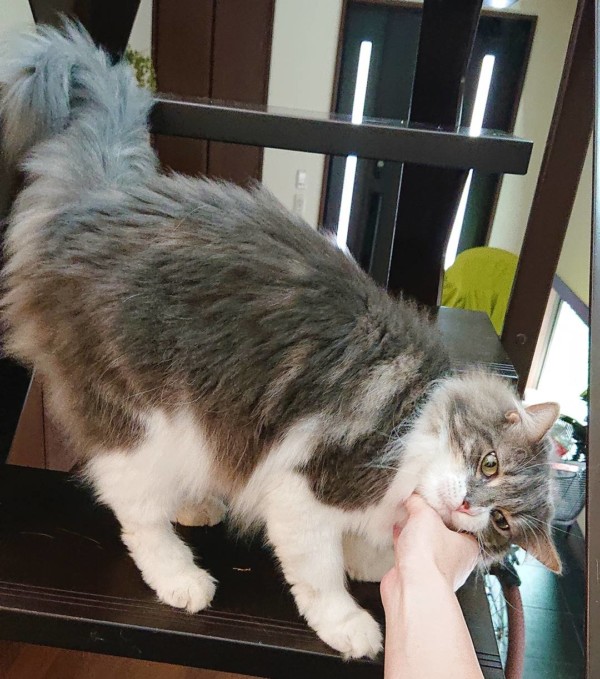 シッターが作業していたり、スマホを見ている時はスリスリ来てくれるのに、手を出すと怒られます(笑)ツンデレ王子❤(ӦvӦ。)