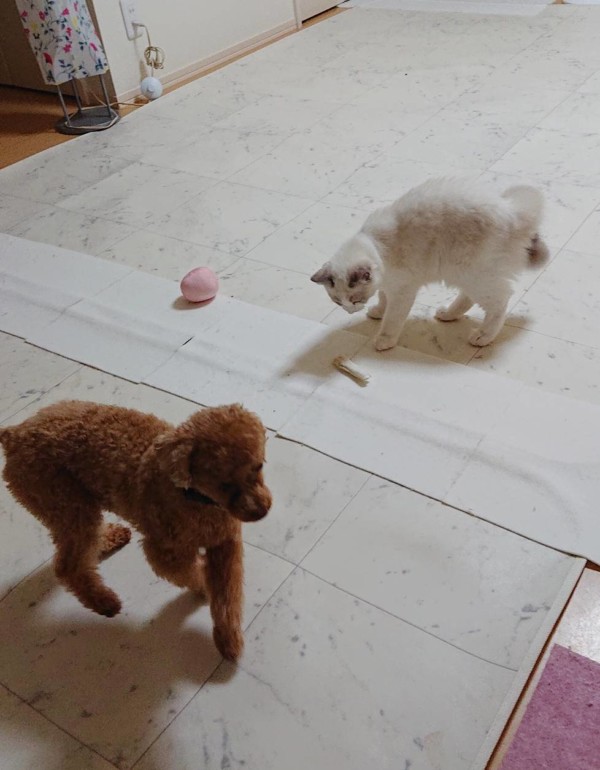 で、毎回恒例、仲良しの神鈴が2階猫部屋から降りてきます(*´艸`*)