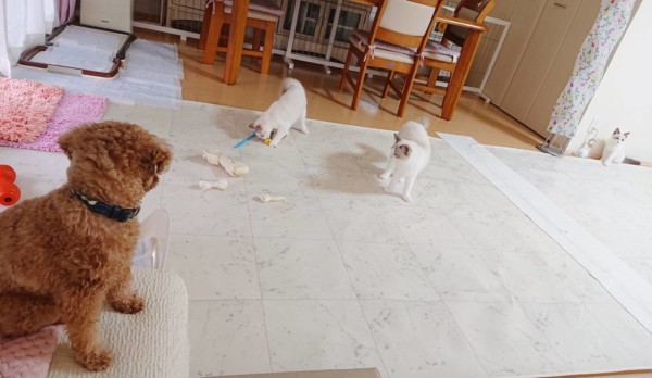 神鈴が安心して1階にいると、4月生まれの子猫達も降りてきます(笑)