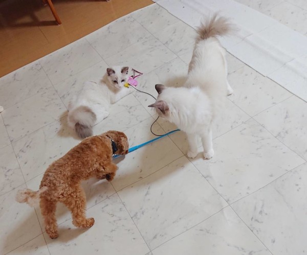 犬部屋に猫がいるのか、ラグドール部屋にバーニー君がいるのか(*´ω`*)