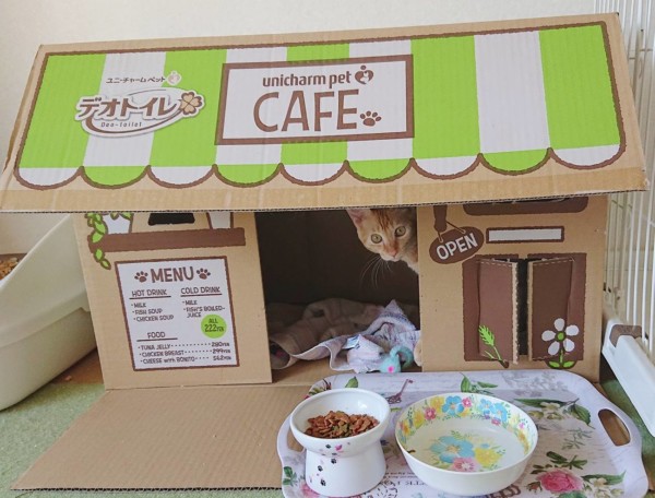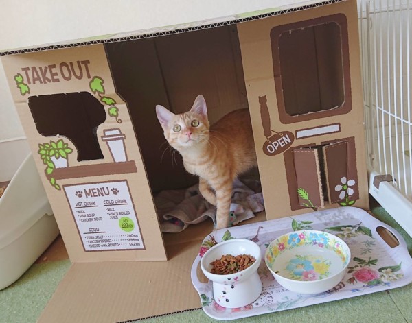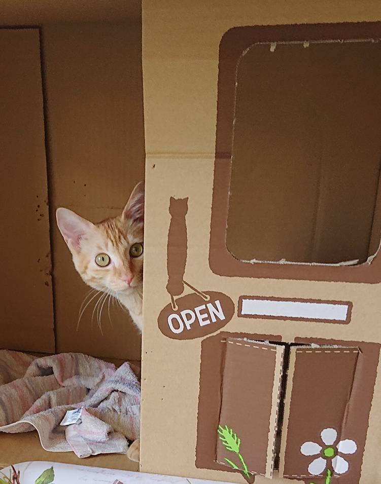 最近、お泊り猫ちゃんに大人気の段ボールハウス🏠
