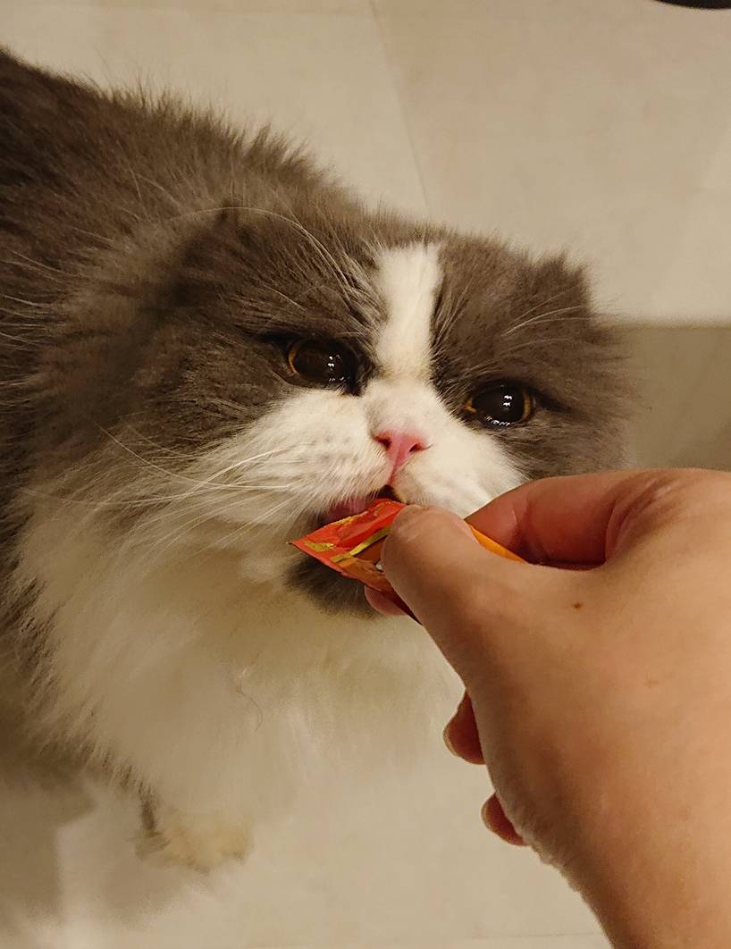 子猫がおっぱい飲む時みたいに耳を後ろに伏せて恍惚の表情です❤(笑)