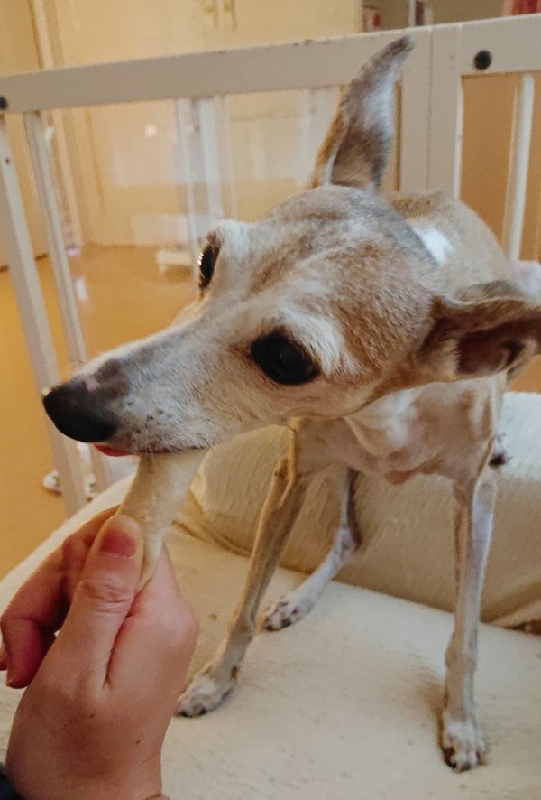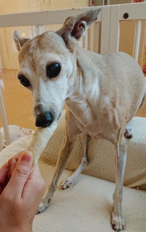 手で持っててあげると、前歯から奥歯まで、まんべんなく噛んでくれます(*^▽^*)🌼🌼🌼