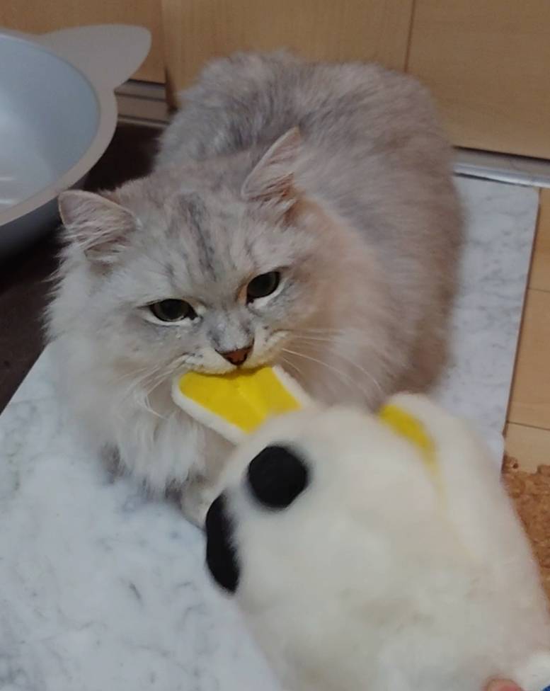 立って短い手で猫パンチ🎵🎵🎵٩(♡ε♡ )۶カワイイ!!
