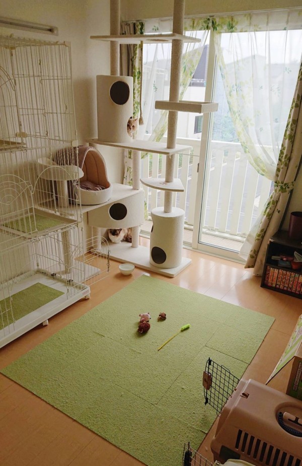 タワーやケージから降りる時に滑らない程度にカーペット敷くだけ🍀