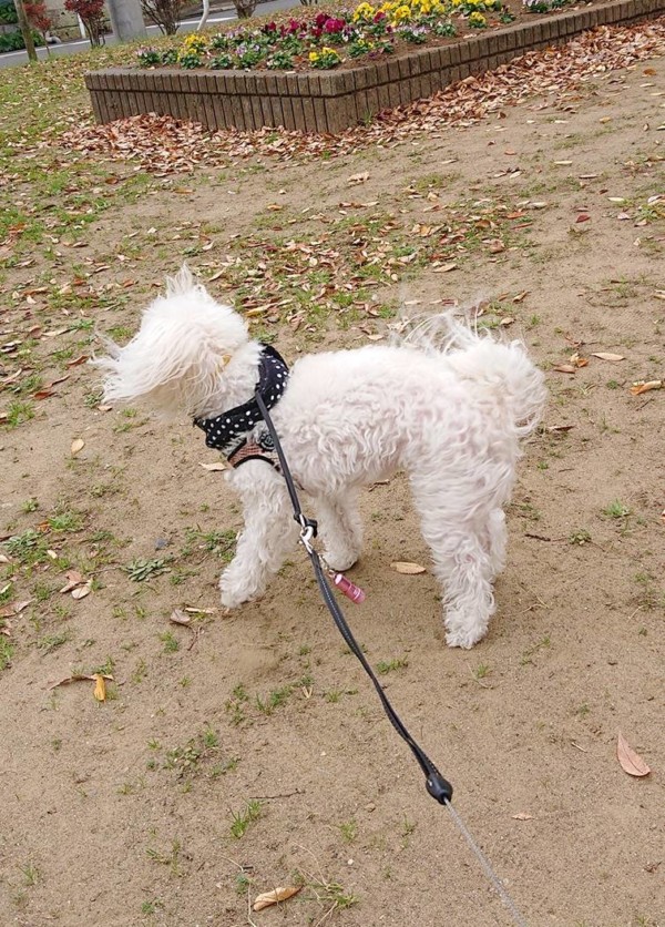 でも、マナーベルトの中にホッカイロを貼って、マフラーにしてあげたので、震える事なく楽しそうに歩いてくれました❤