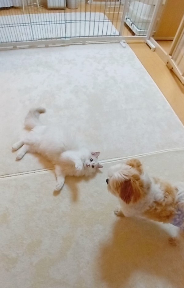 やはり同じ性格、人間・犬・猫大好きの神風とまずは仲良くなりましたね❤