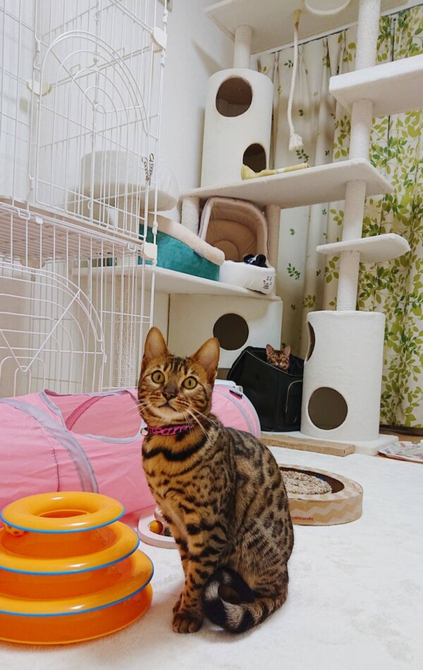 ベンガルの美猫姉妹、初めてのお泊りです(ㆁωㆁ*)❤