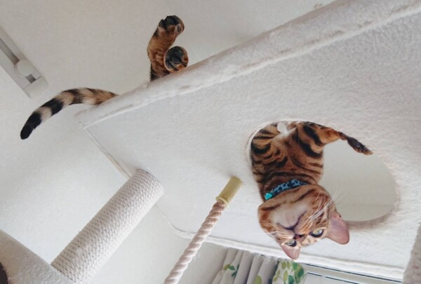 タワーの丸い穴から逆さになって顔を出すのにハマったらしい(笑)