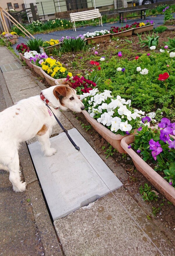 「ここは、いつも季節のお花が植えてあるんだワン」