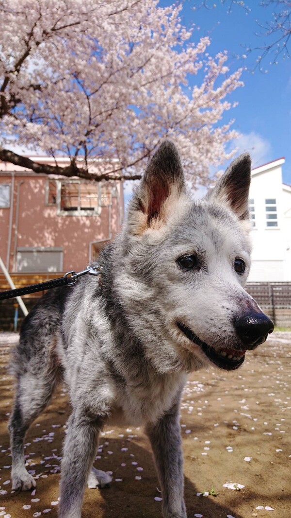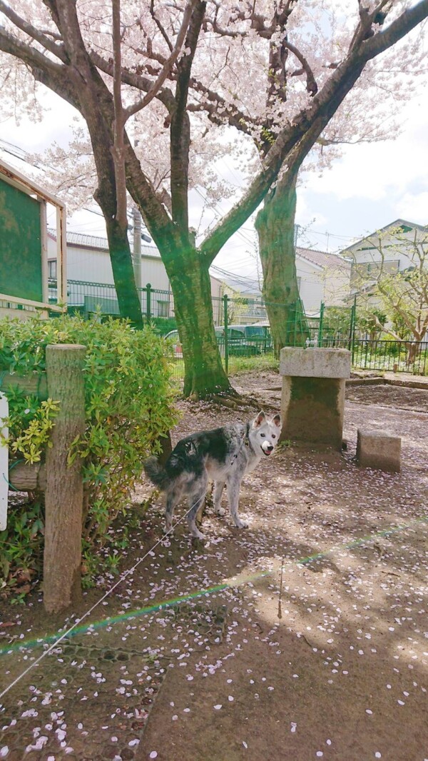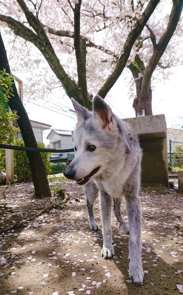 桜の木の下にオオカミさんがいます!!(✽ ゚д゚ ✽)!!!