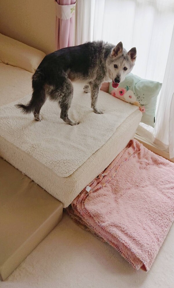 いつも、ソファーで毛繕いしていると毎回落ちるので(*´艸`*)(笑)