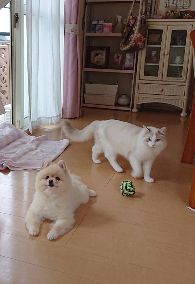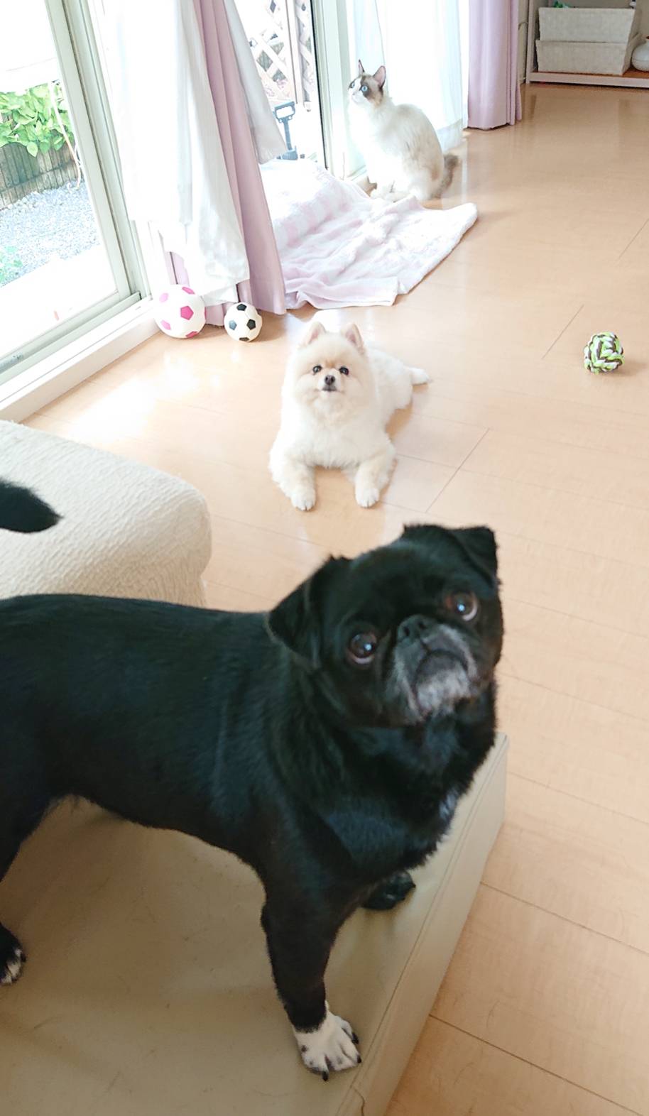 お泊り最初の頃は人間に対して敵意剥き出しでどうなる事かと思いましたが、今はシッターSHIORIとすっかり仲良しです٩(♡ε♡ )۶❤