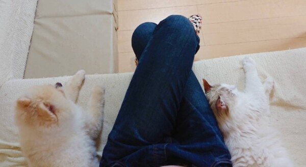 シッターの左にハント君、右に神羽がいつもの寛ぎスタイルになりました♪