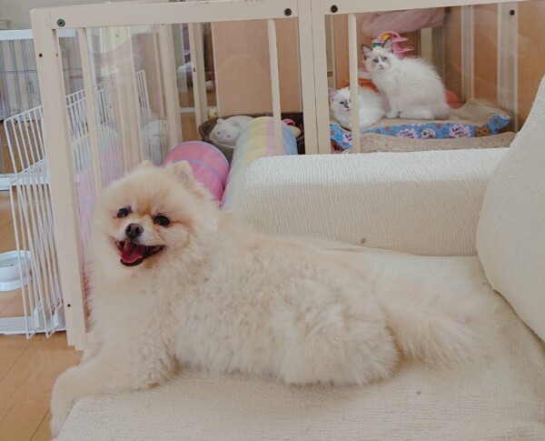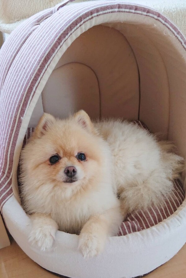 チェックアウト予定の数時間前に、オヤツでお手をする時に「キャン!!」と(´゚д゚`)
